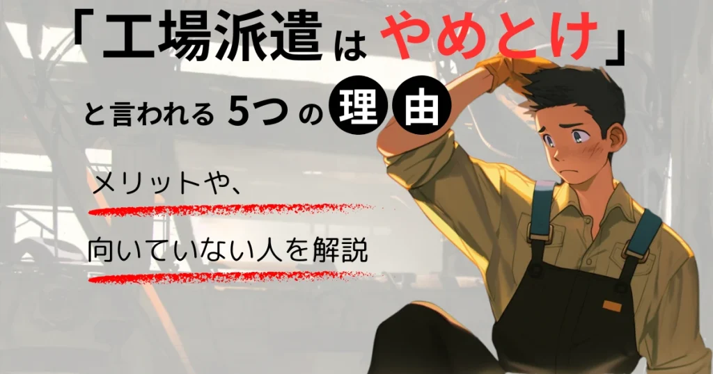 「工場派遣はやめとけ」と言われる5つの理由|メリットや、向いていない人を解説